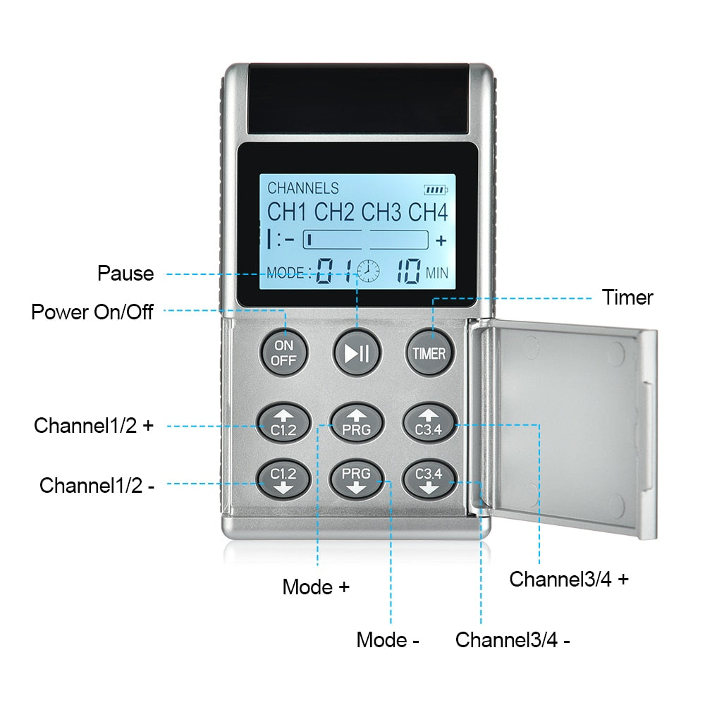 TENS Therapy Massager 15 Modes 4 Output Electric EMS Nerve Muscle Stimulator Digital Pulse