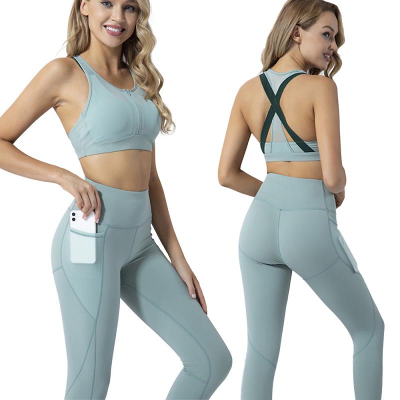 Seamless Yoga Set Fitness Sport Suits 2 Colors Gym Clothing Crop Shockproof bra High Waist Running Leggings Pants