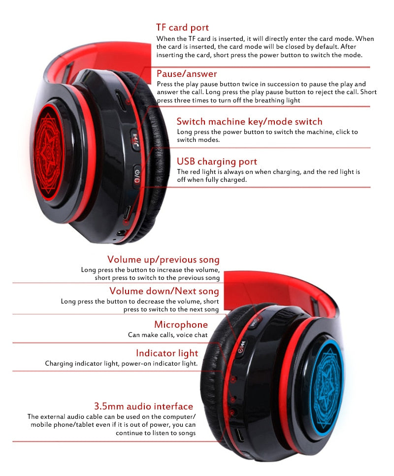 Magic Array Wireless Bluetooth Headphones Head-mounted Sports Dragon Foldable Stereo Music