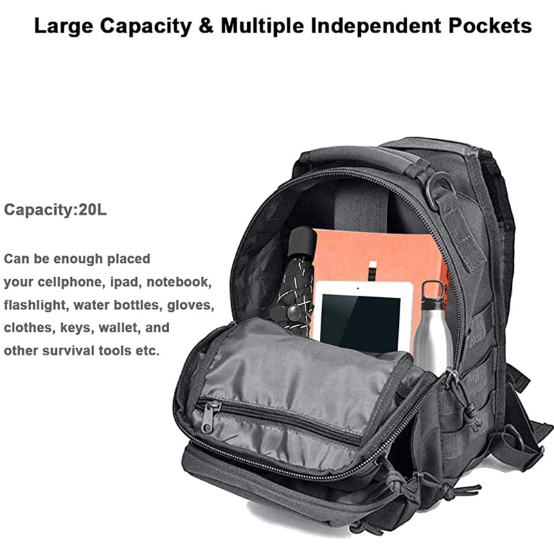 Military Sling Waterproof Backpack 20L Tactical Assault Army Rucksack Shoulder Bag For Outdoor Hiking Camping Trekking