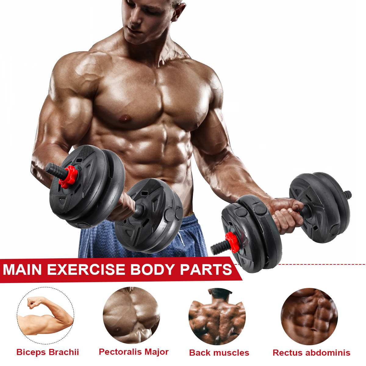 Adjustable Dumbbell Set Weight Lifting Barbell Plates Extension Bars Workout Training Home Gym Fitness Equipment's 22lbs/33lbs