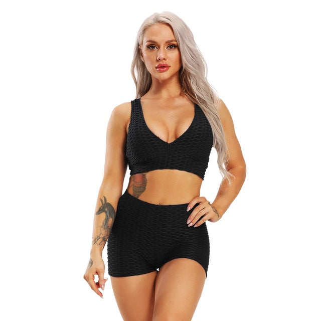 Women 2pcs Yoga Set Sports Suit Bra Sleeveless Tanks Fitness Running Gym Sportswear Breathable Summer Shorts Sexy Tracksuit