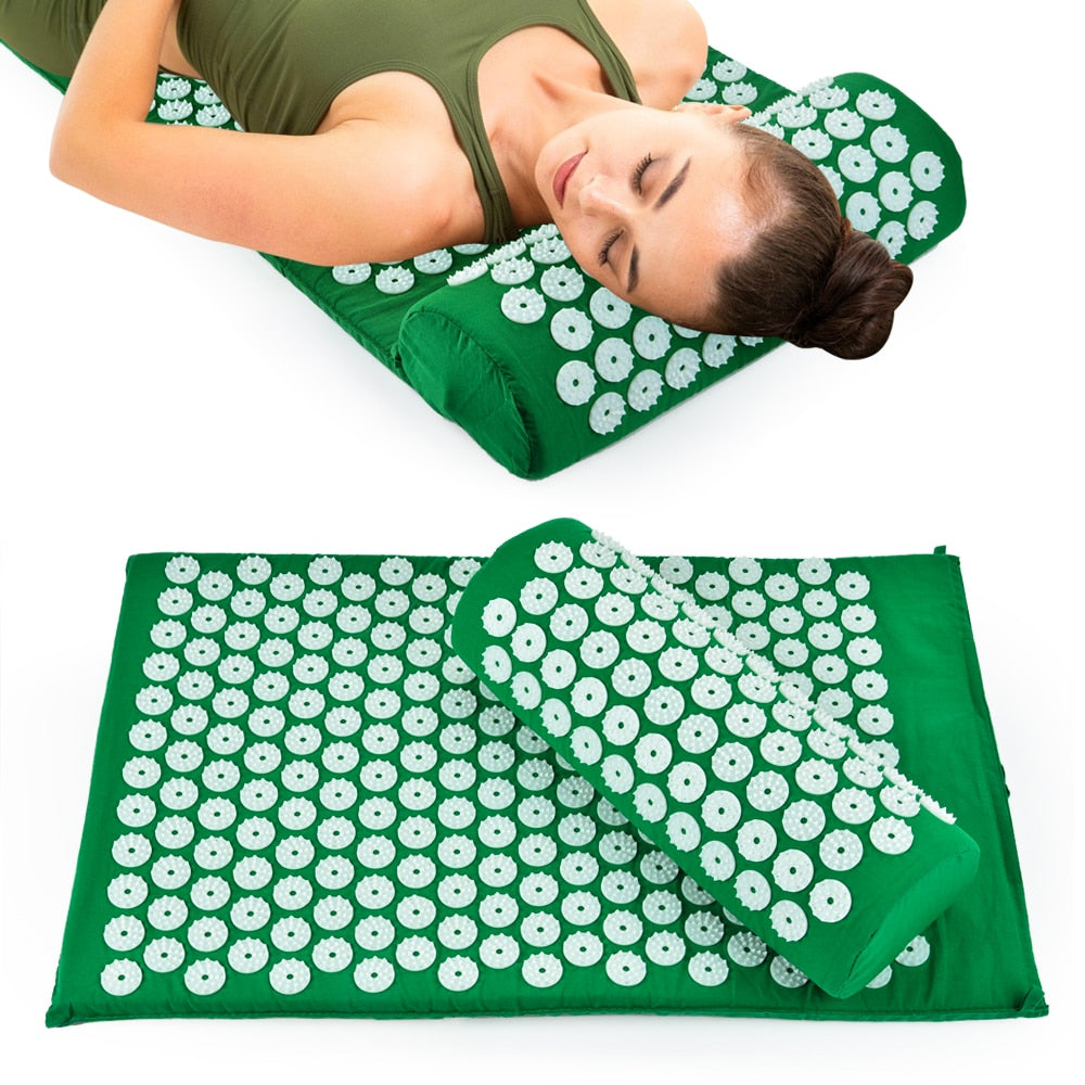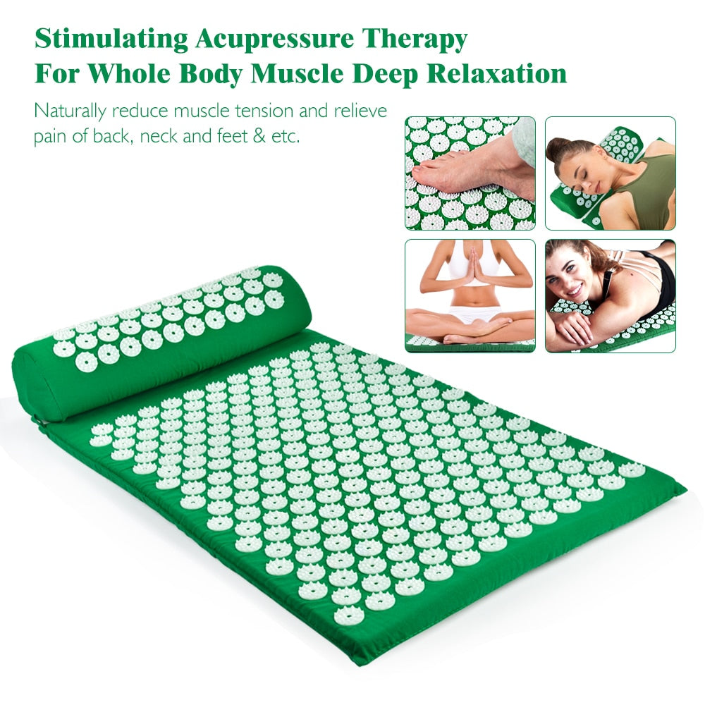 Acupressure Massager Cushion Yoga Mat with Pillow Relieve Body Stress Back Pain Acupuncture Massage Spike
