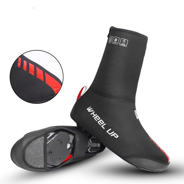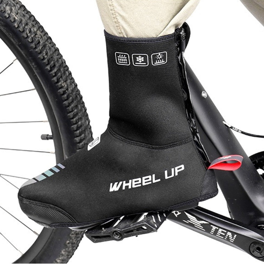 Cycling Shoe Covers Thermal Fleece-Lined for Bike Windproof Overshoes with Reflective Zipper