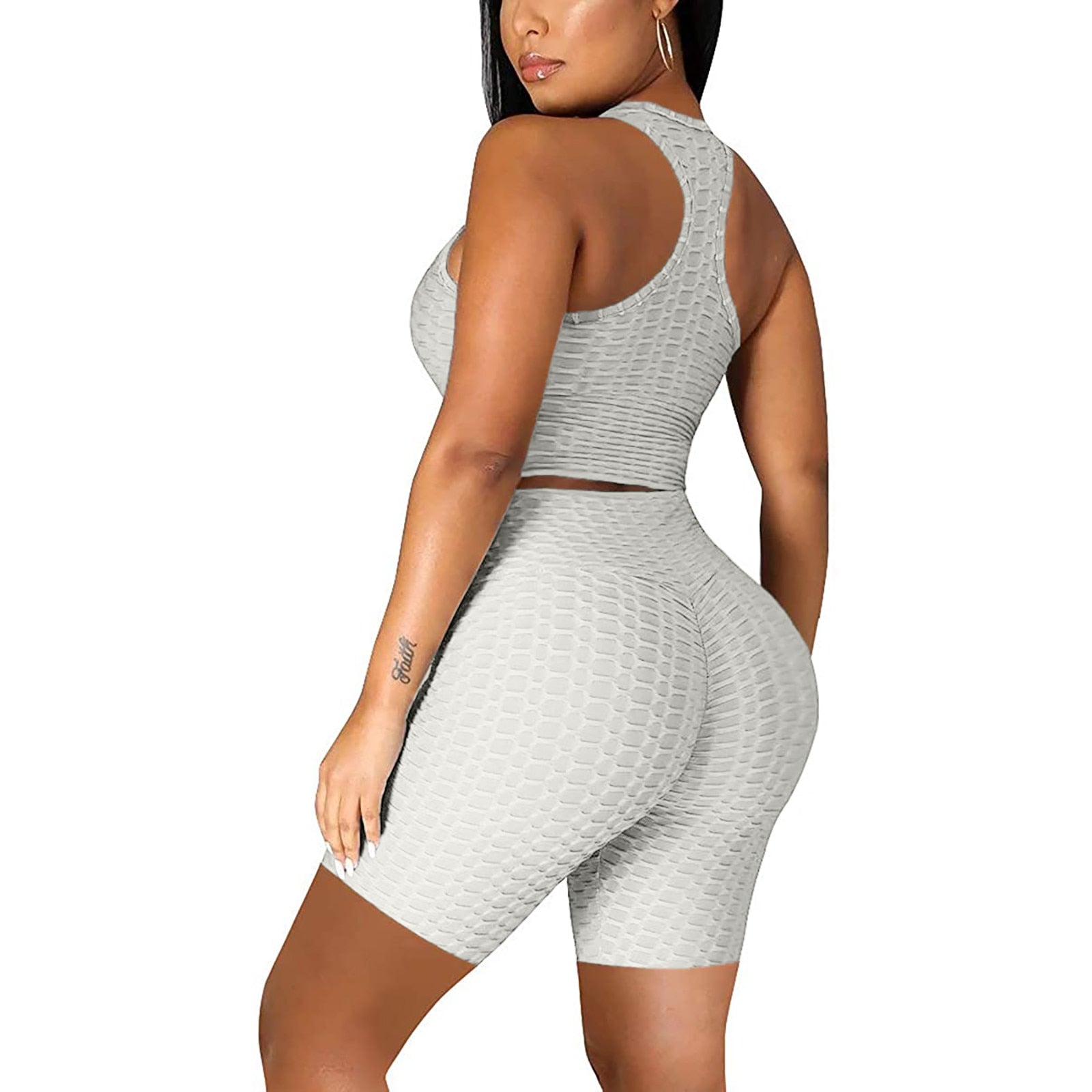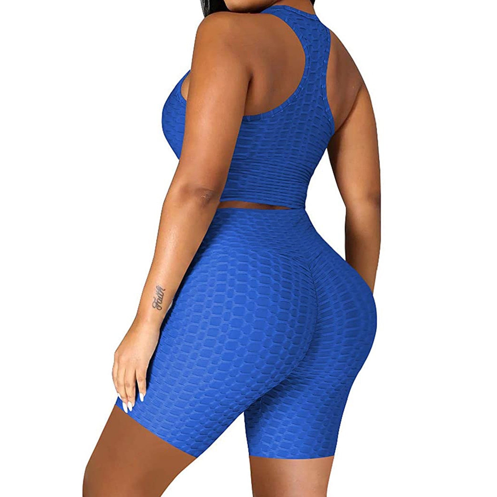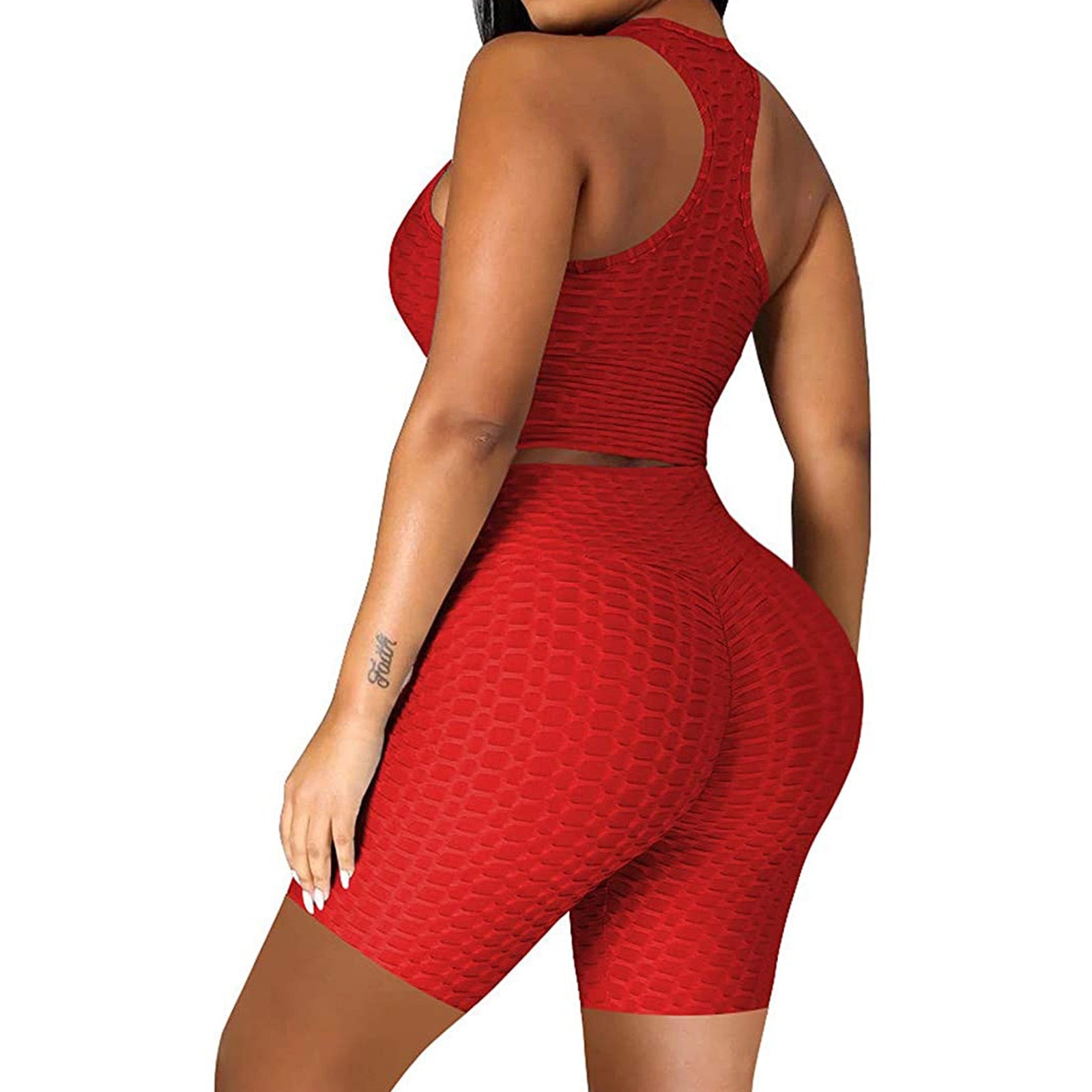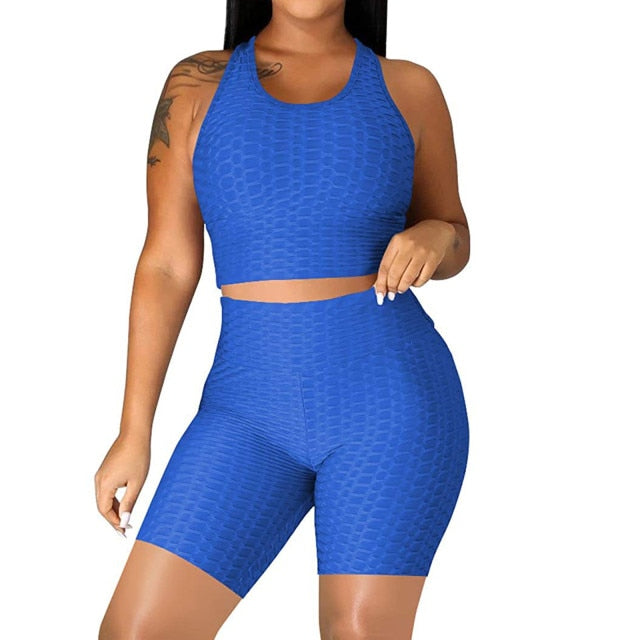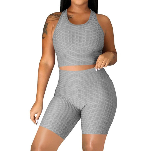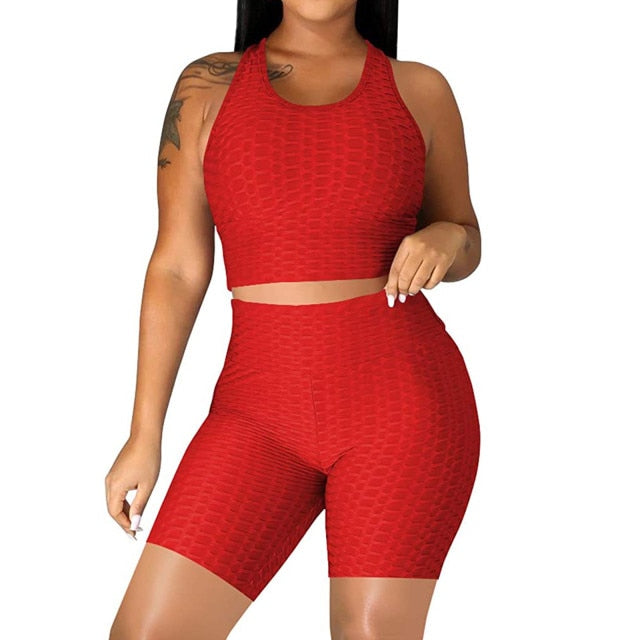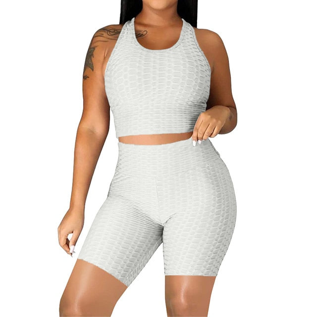 DAIGELO Elasticity Yoga Short Sets Plus Size Womens Sexy Solid Vest Sports Fitness Suit