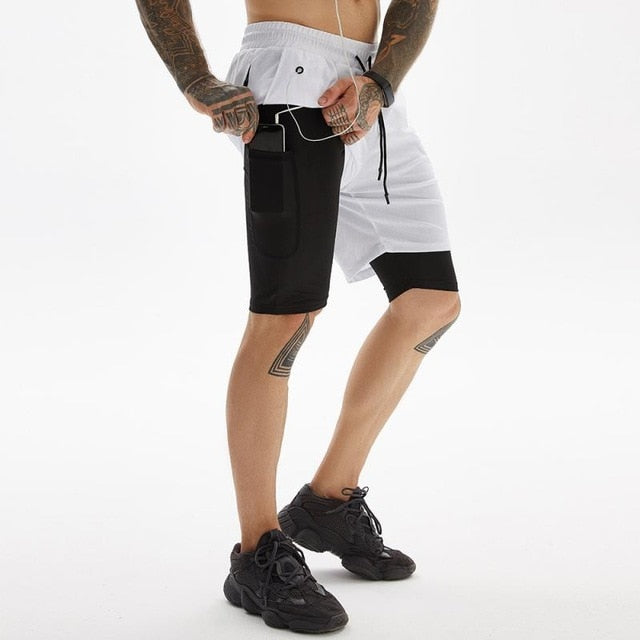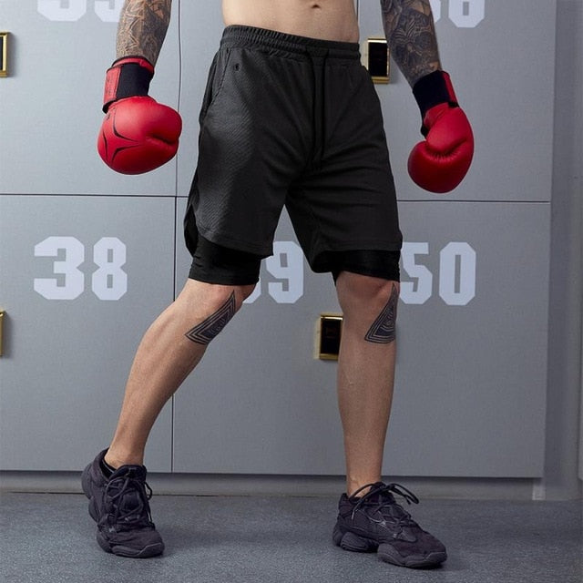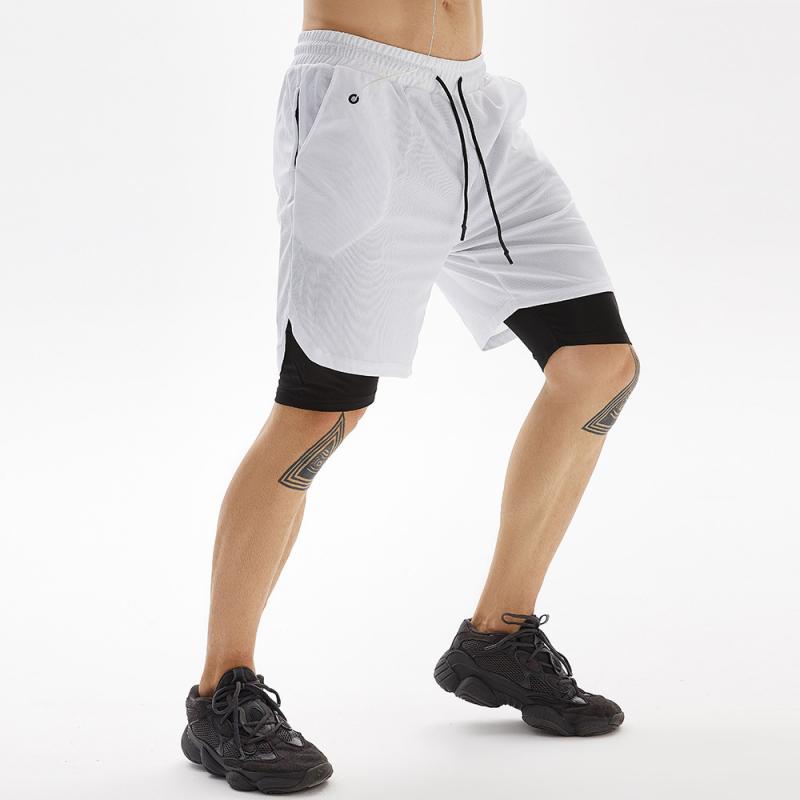 Double Deck Running Shorts Men Fitness Training Quick Dry Sport Jogging Bermuda Basketball Shorts