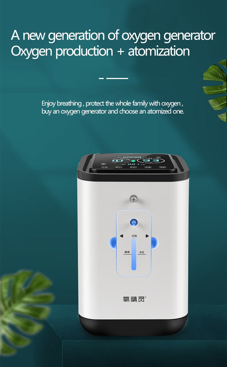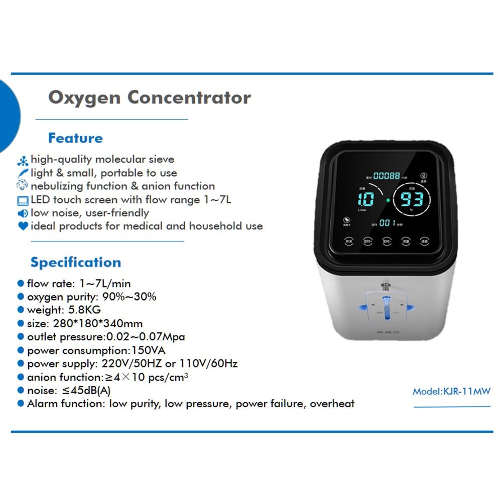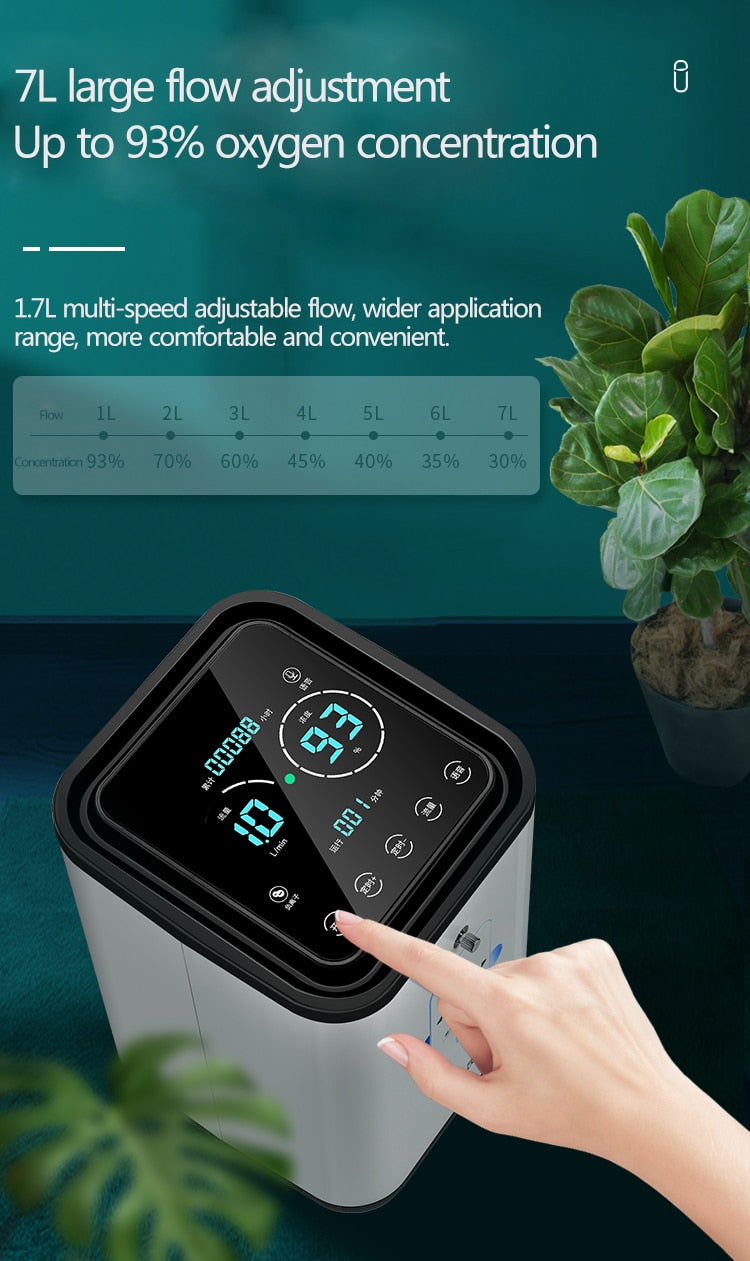 Portable Oxygen Generator 1-7L AC110-220V Concentrator Adjustable High Purify LED Touch Screen Low Noise
