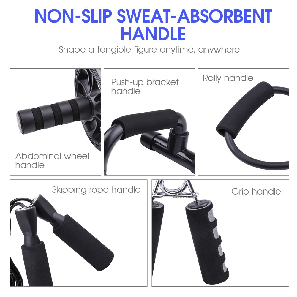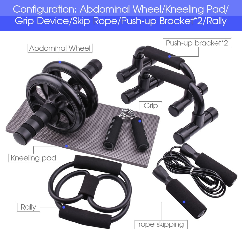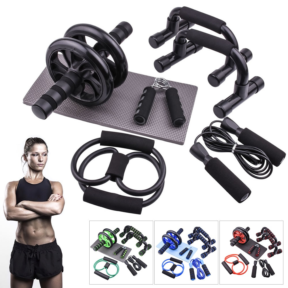 Fitness Muscle Trainer Home Gym Abdominal Wheel Ab Roller Resistance Bands Push Up Stand Bar Jump Rope Grip Strength Exercise