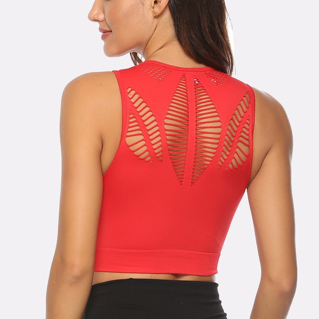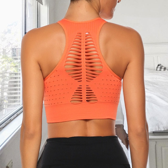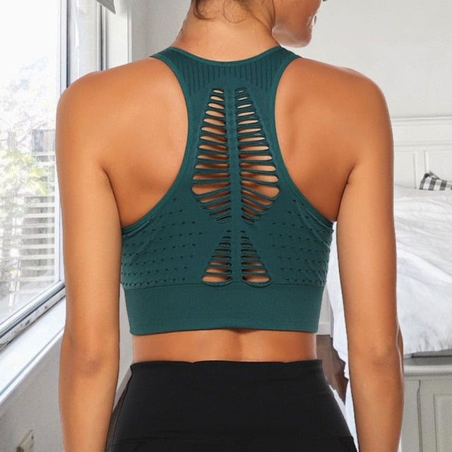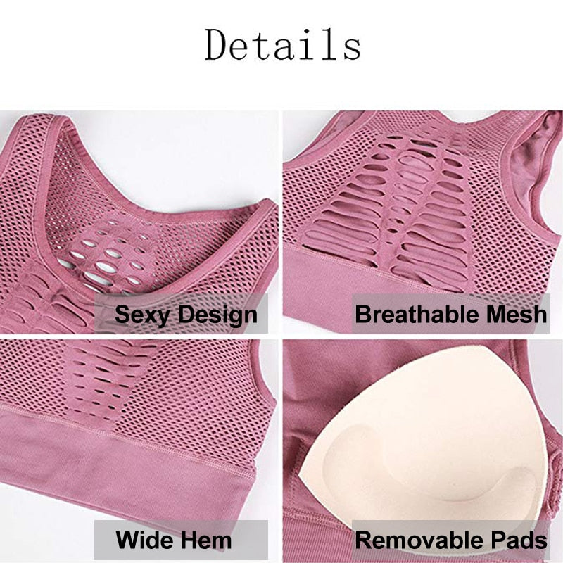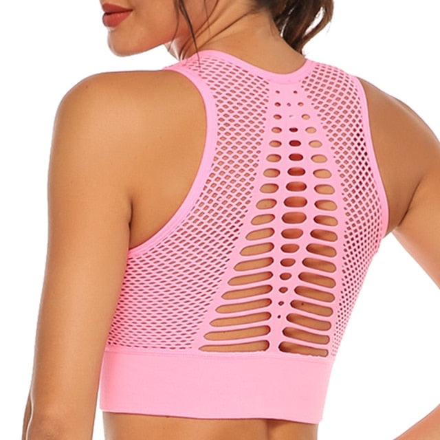 Fitness Yoga Top Women Sport Bra Sexy Mesh Shockproof Gym Crop Vest Breathable Workout Underwear Push Up Sportswear