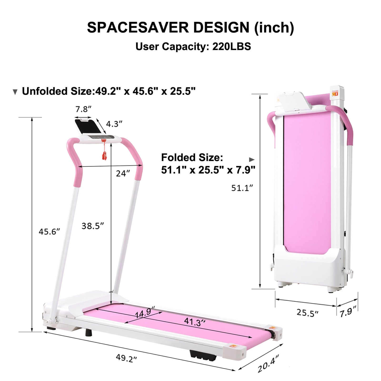 Foldable Treadmil With Pad/Phone Rack Walk Gym Running Indoor Folding Electric Walking Treadmill Fitness Machine for Home