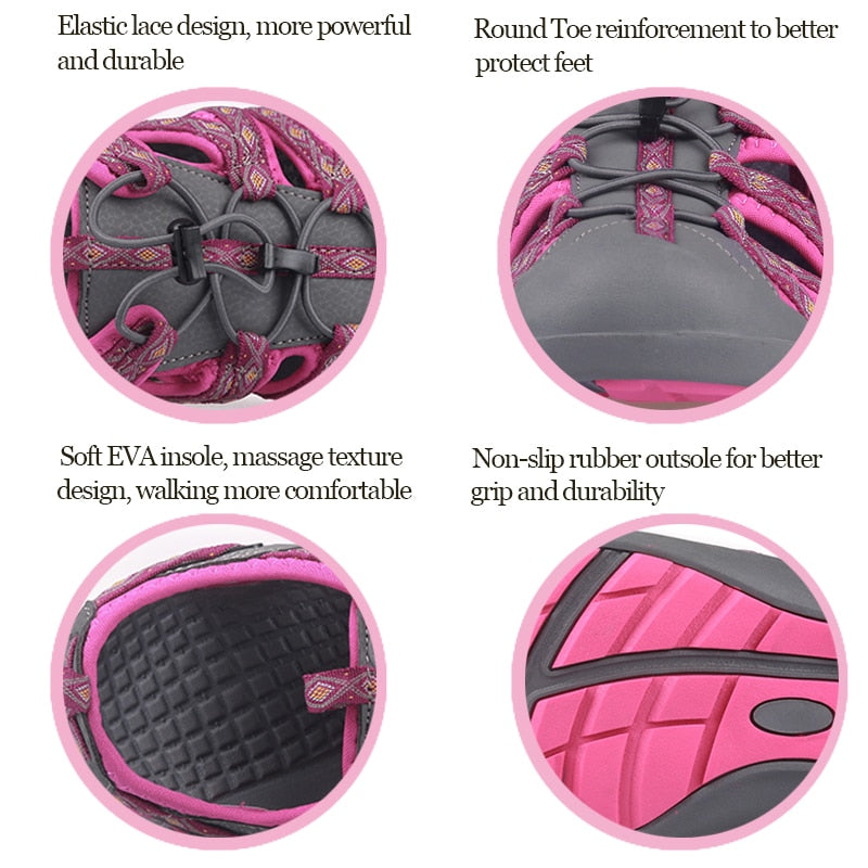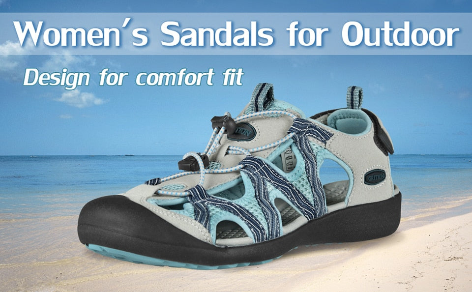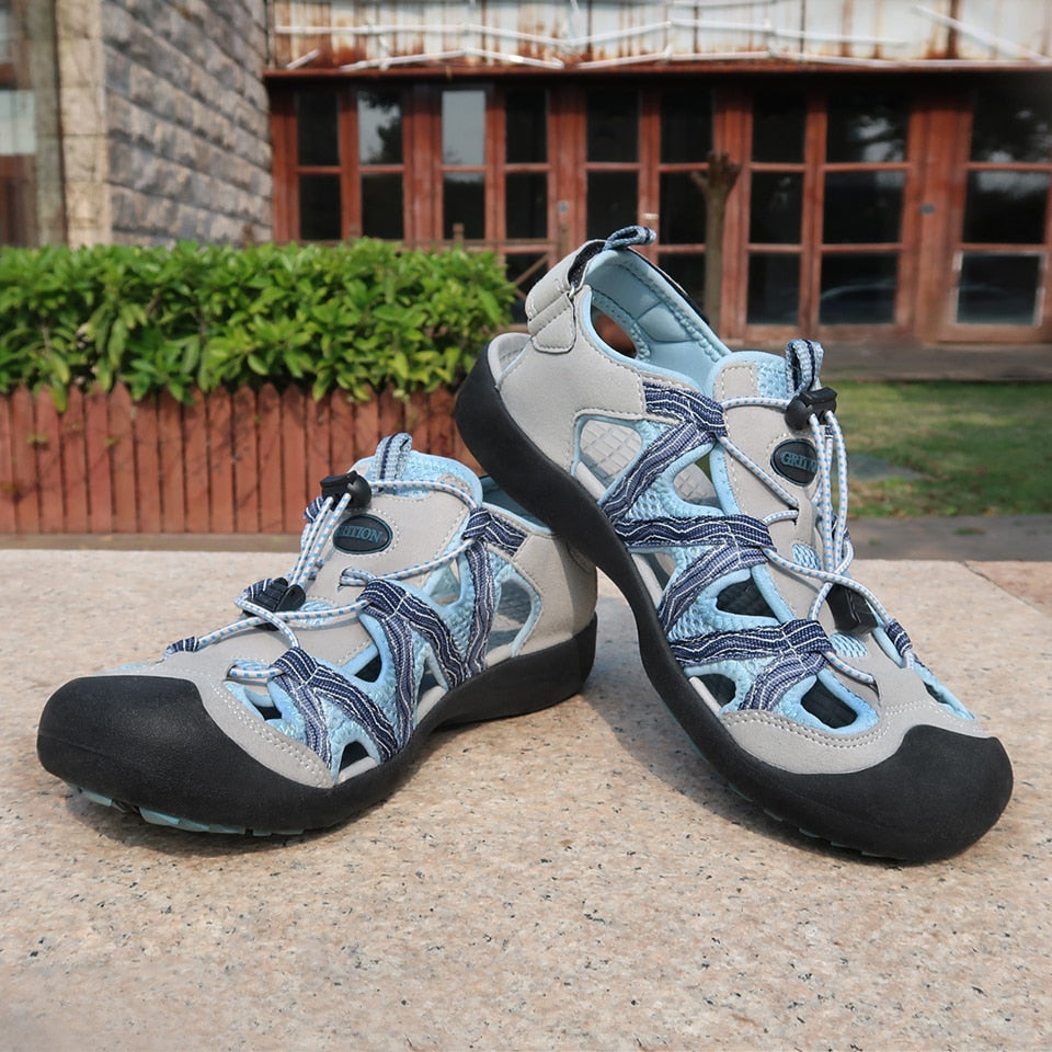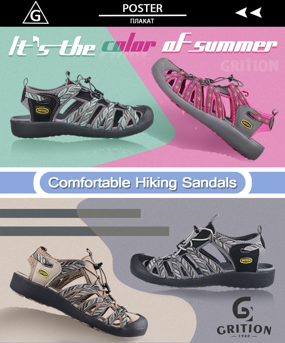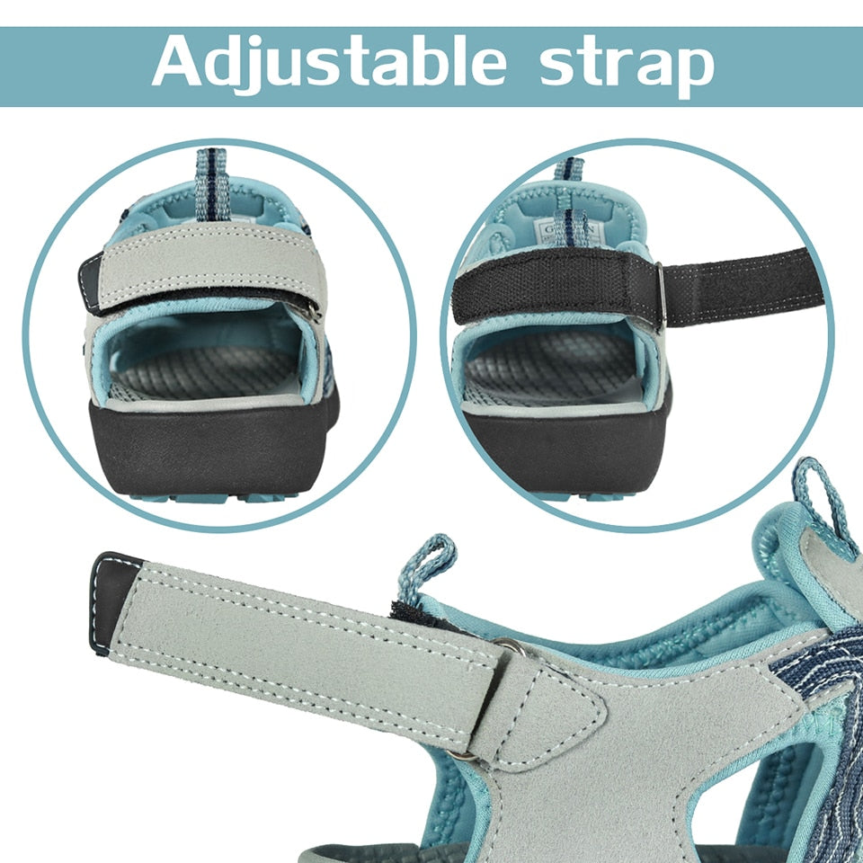 GRITION Women Platform Wedges Beach Sandals Trekking Nubuck Leather Shoes Summer Outdoor Flat Casual Sport