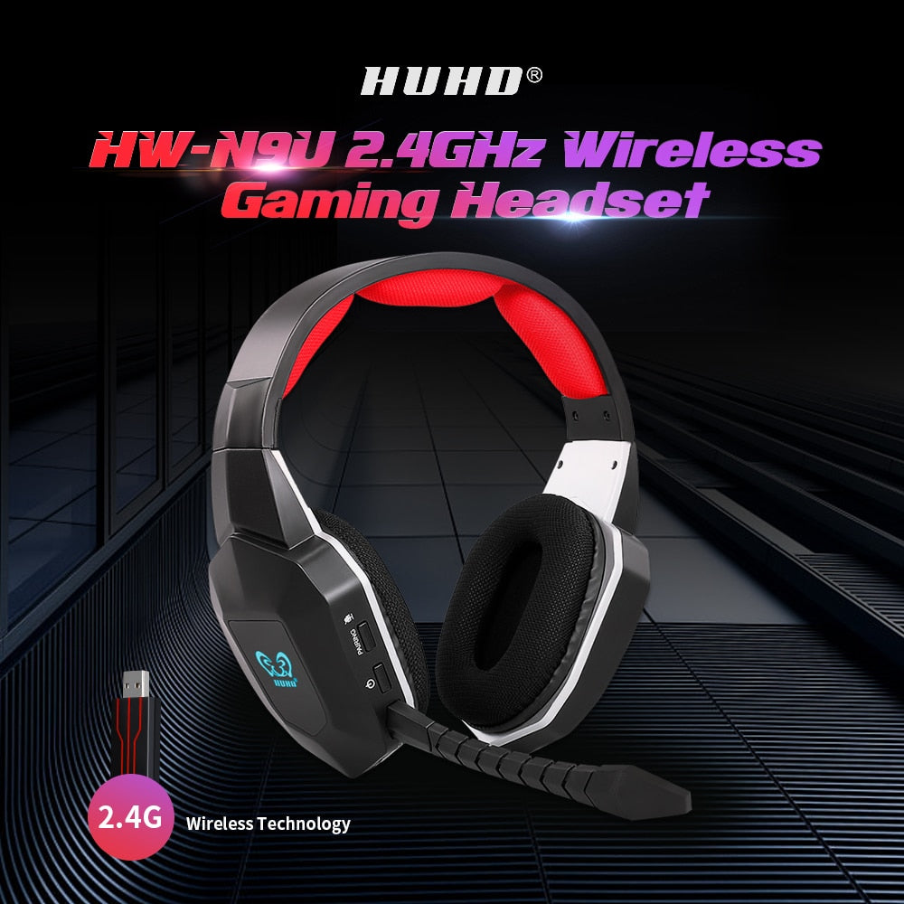 HW-N9U 2.4G Wireless Gaming Headset Virtual 7.1 Surround Sound with Removable Microphone Replacement for PS4/PC/Mac