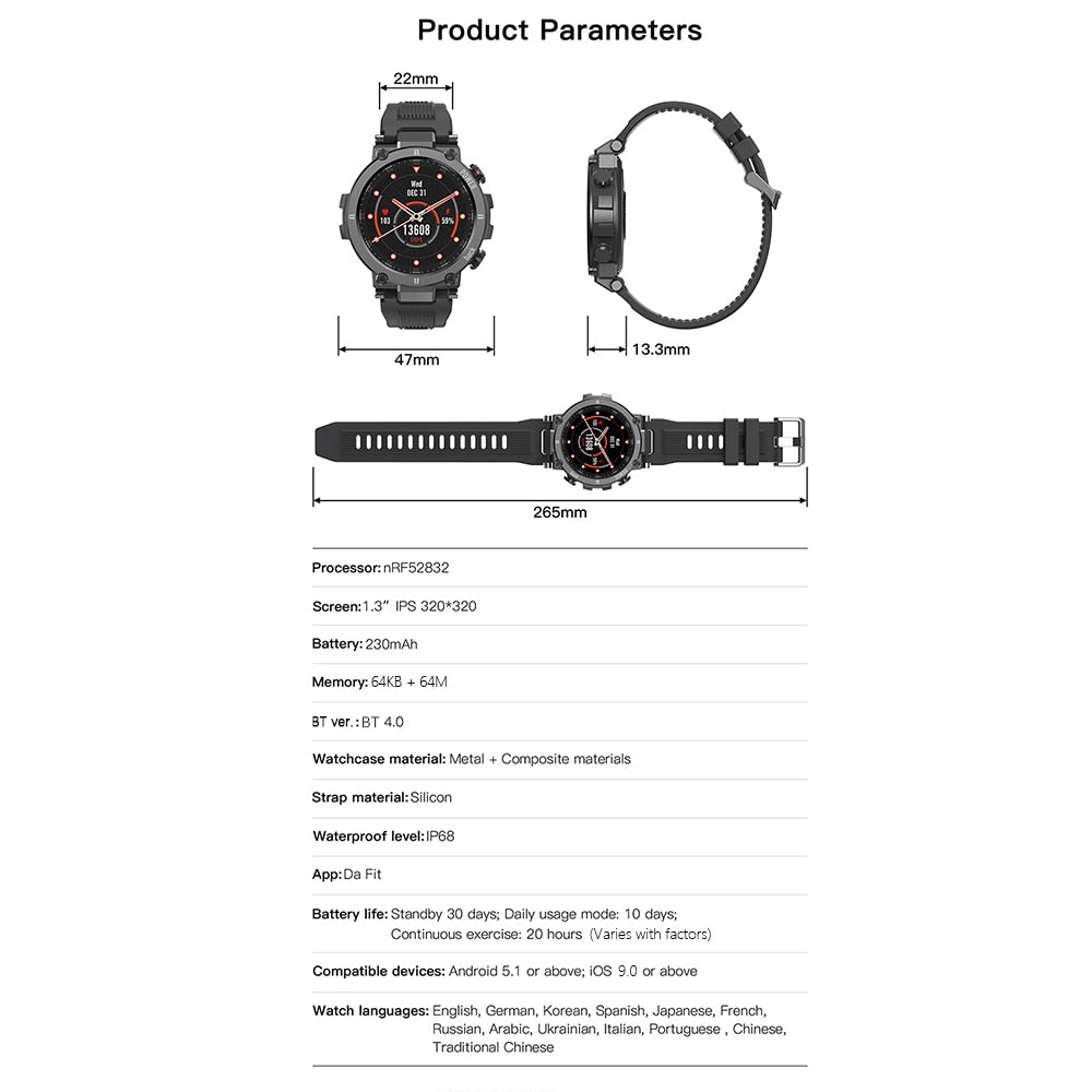 KOSPET Raptor Smart Watch Men Full Touch Screen Bluetooth Fitness Tracker Heart Rate Monitor IP68 Waterproof Sport