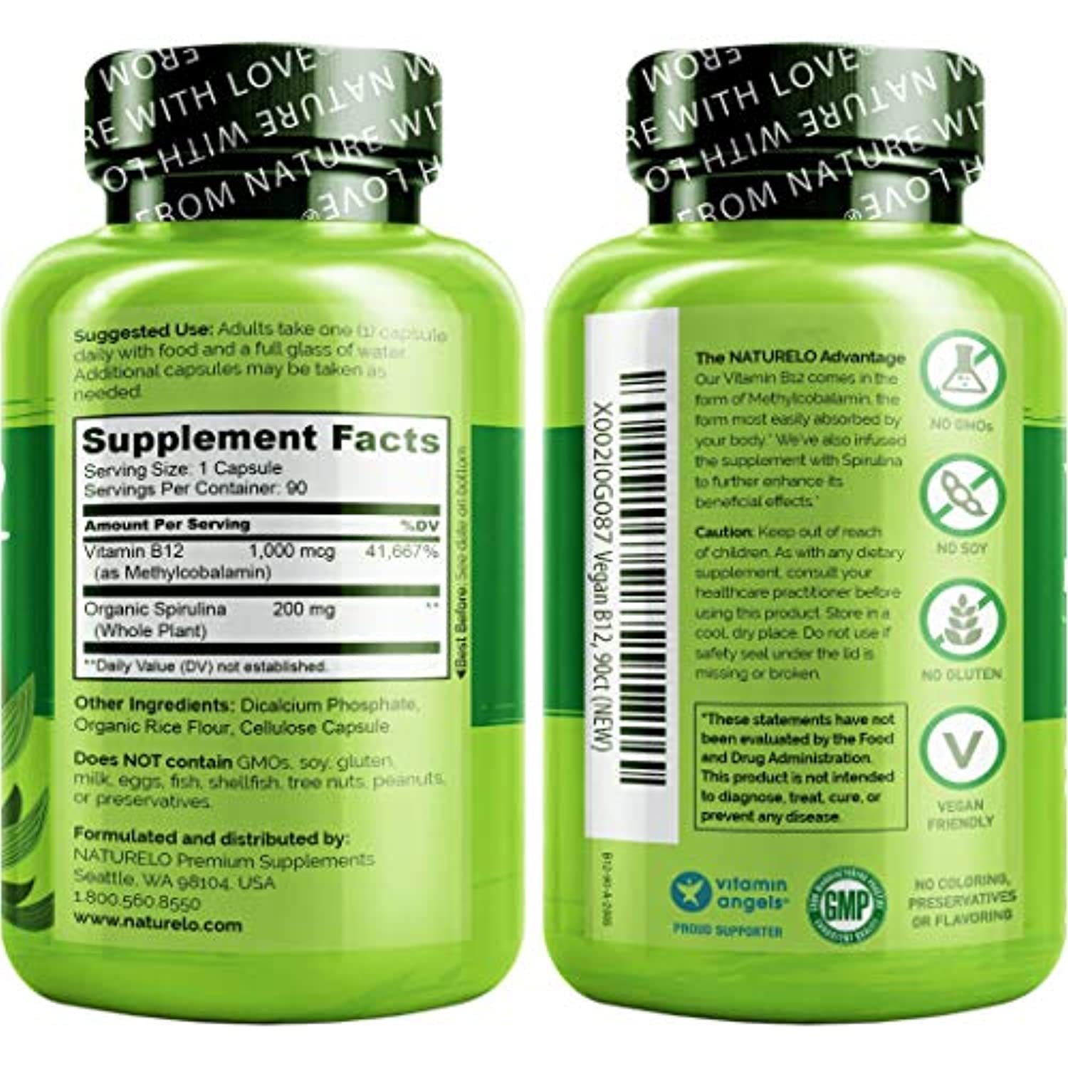 Premium Quality: Non-GMO, Gluten Free, Soy Free, Vegan & Vegetarian, with NO Coloring, Flavoring, or Preservatives. Experience the NATURELO difference today!