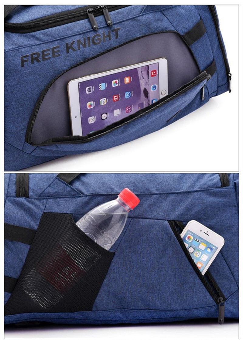 Outdoor Waterproof Nylon Sports Gym Bags Men Women with shoes Compartment