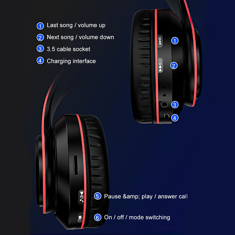 SAMTIAN Wireless Headphones Bluetooth Headsets Foldable HIFI Audio Mp3 Adjustable Earphones with Mic for Music