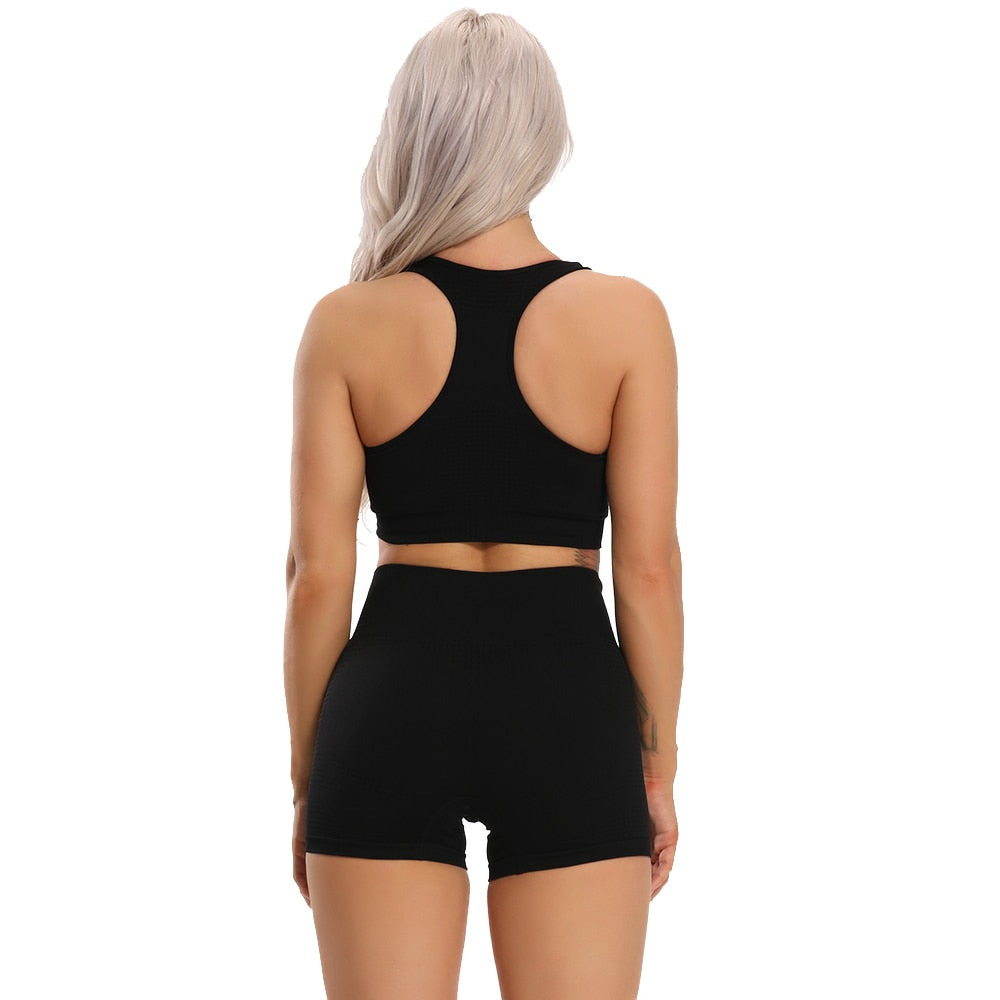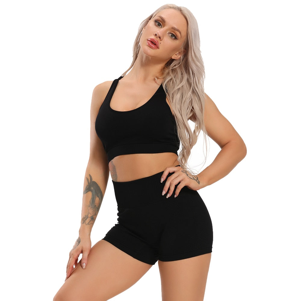Seamless Yoga Set Women's Tracksuit Workout Shorts Crop Top Short Sleeve Shirt