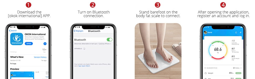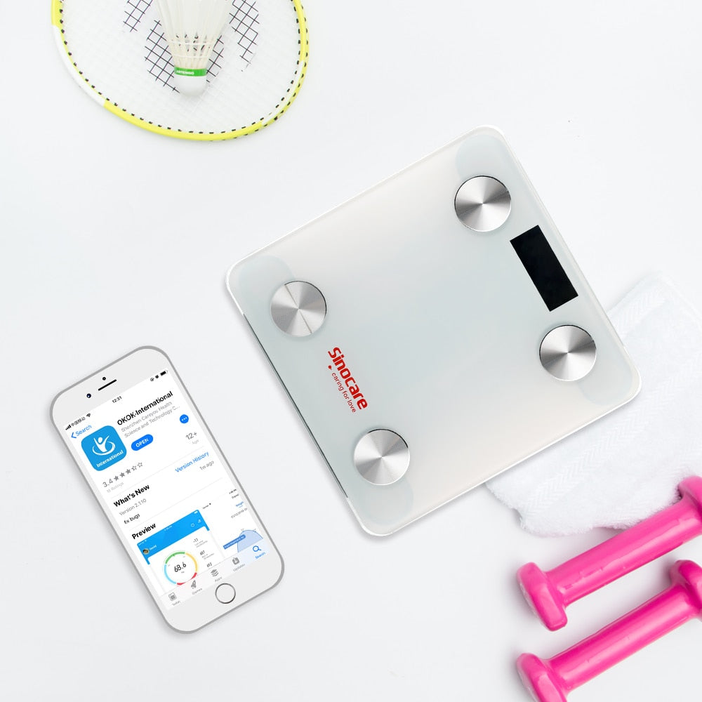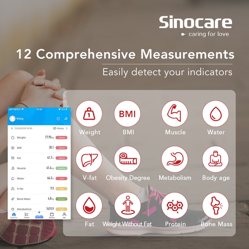 Sinocare Smart Body Fat Composition Scale Test 12 Body Date Mass LED Display Bluetooth