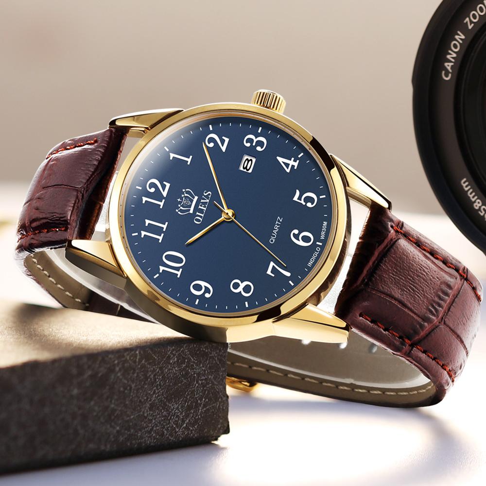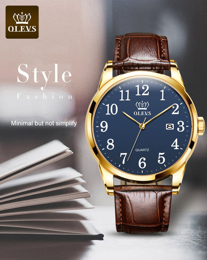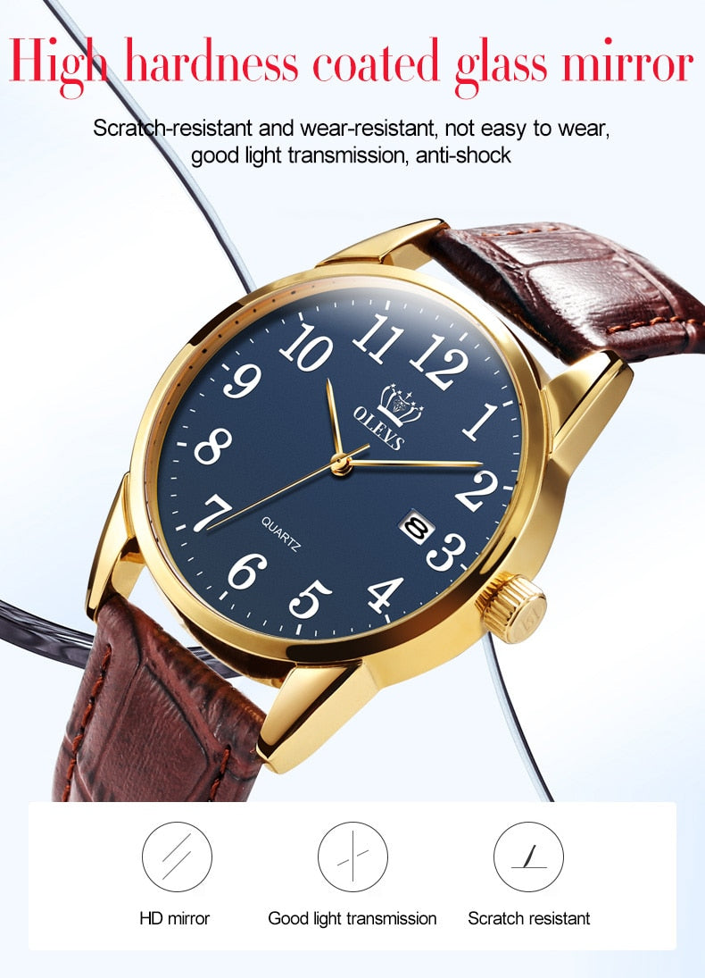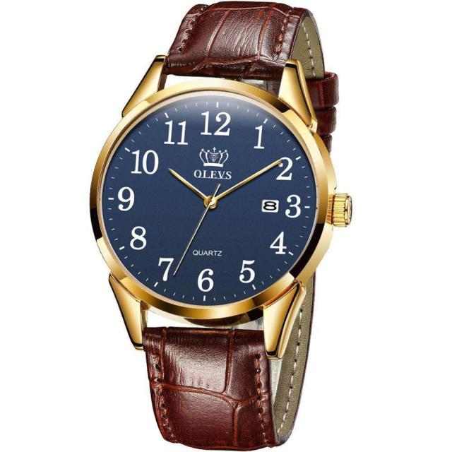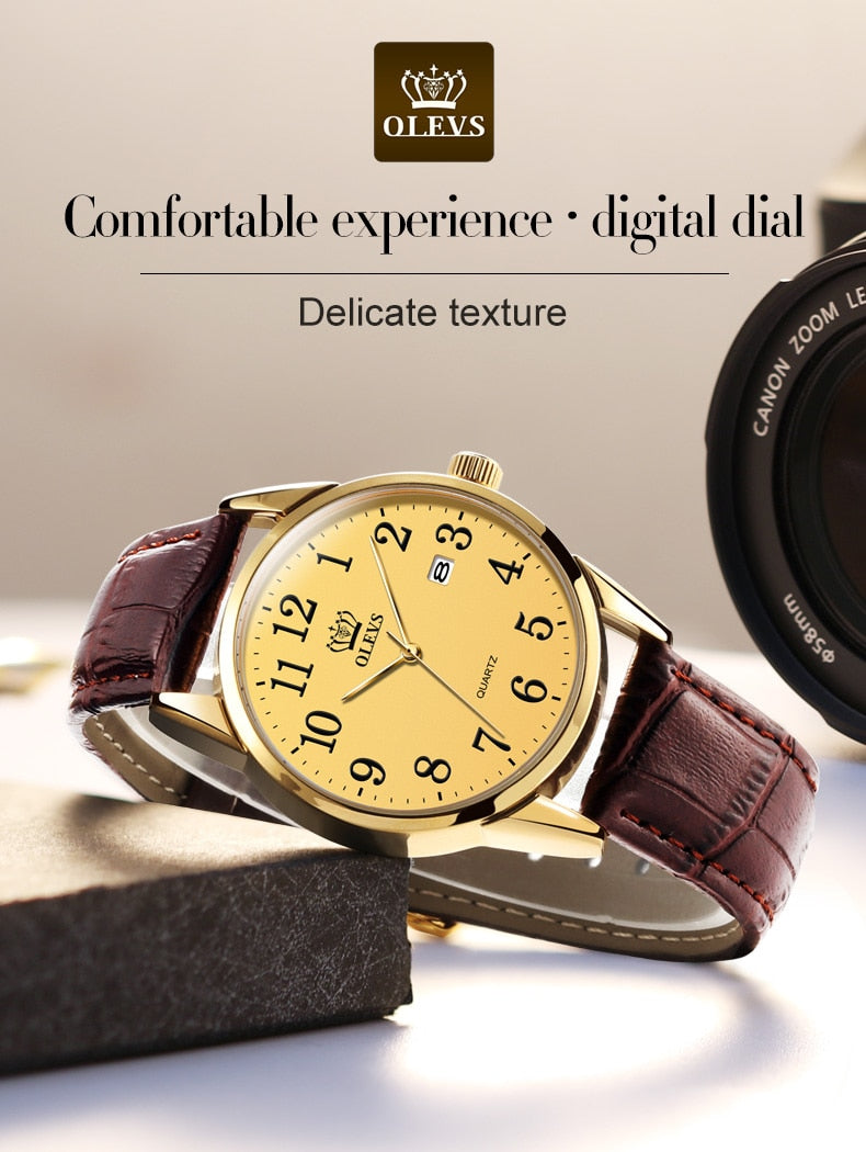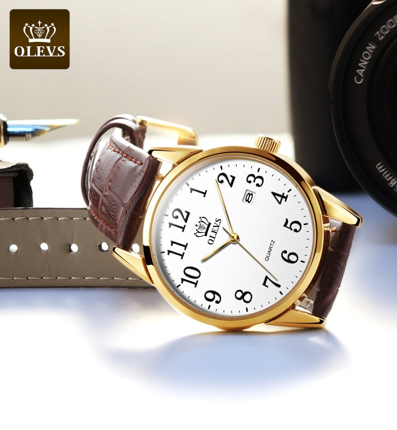 Easy Reader Date OLEVS Men/Women Watch Brown Leather Strap Waterproof Casual Quartz