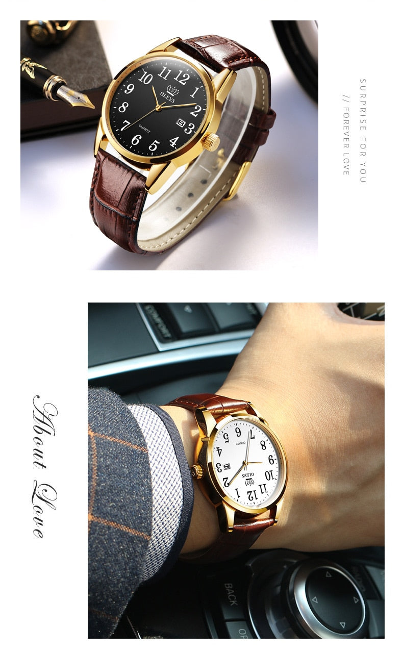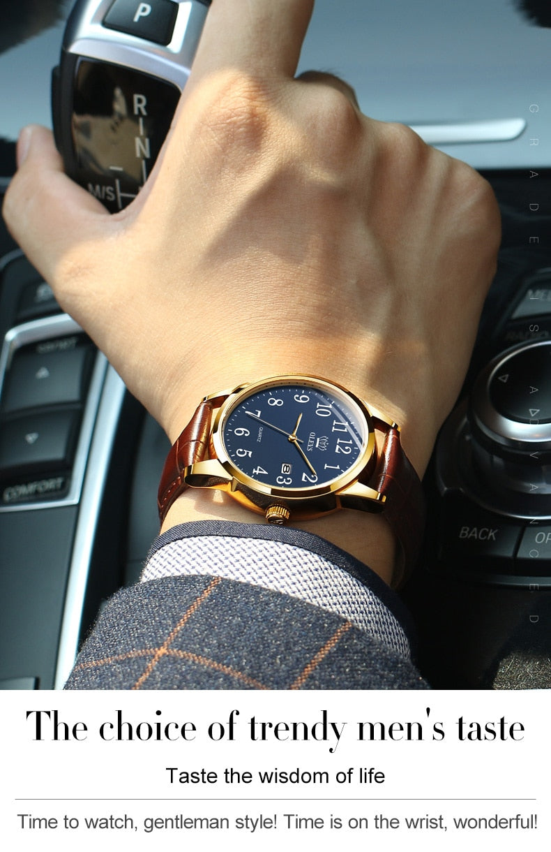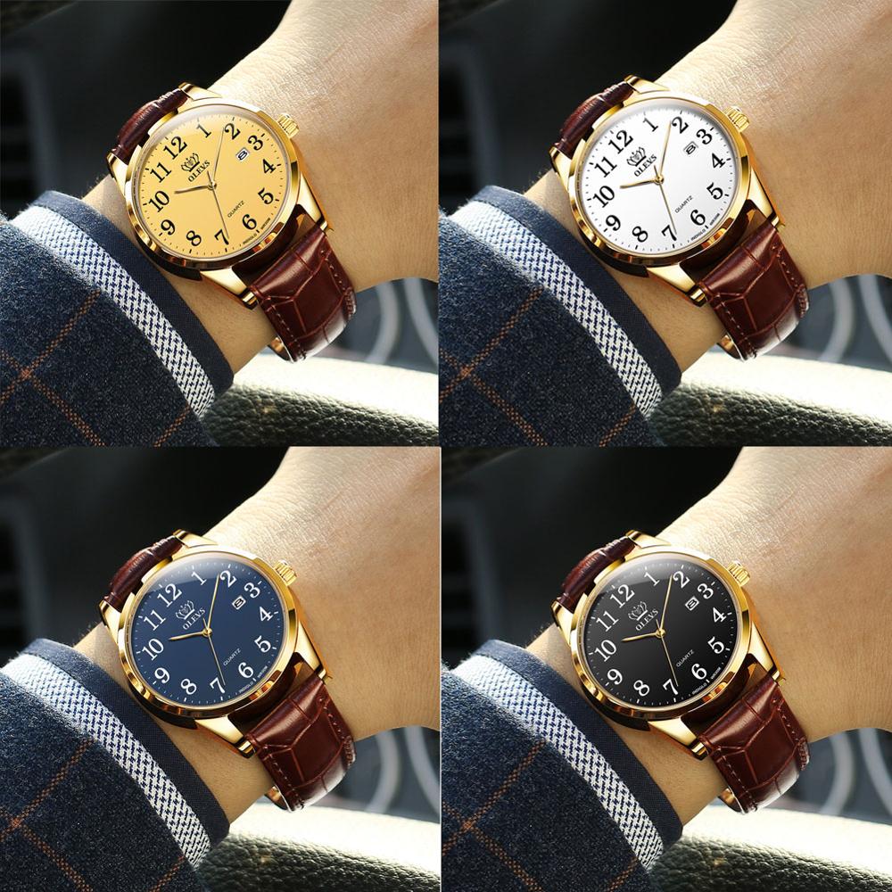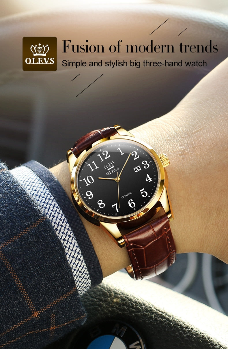 Easy Reader Date OLEVS Men/Women Watch Brown Leather Strap Waterproof Casual Quartz