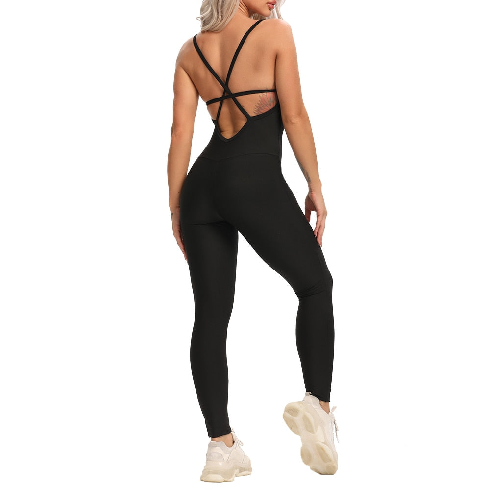 Women’s Halter Long Jumpsuits Skinny Backless Sleeveless Workout Overalls Tracksuit Sportswear Fashion Yoga Suit Gym Sport Set