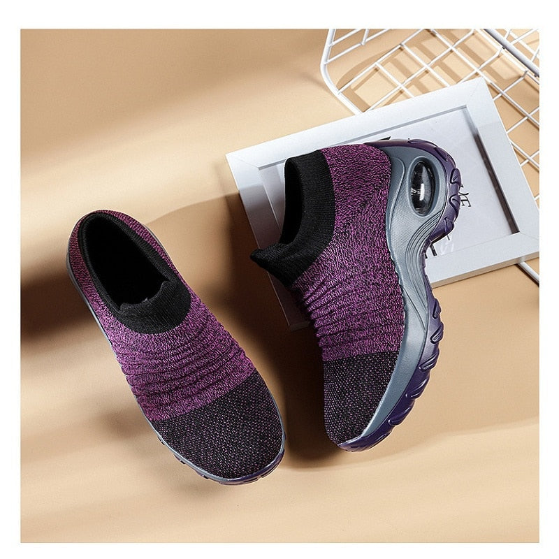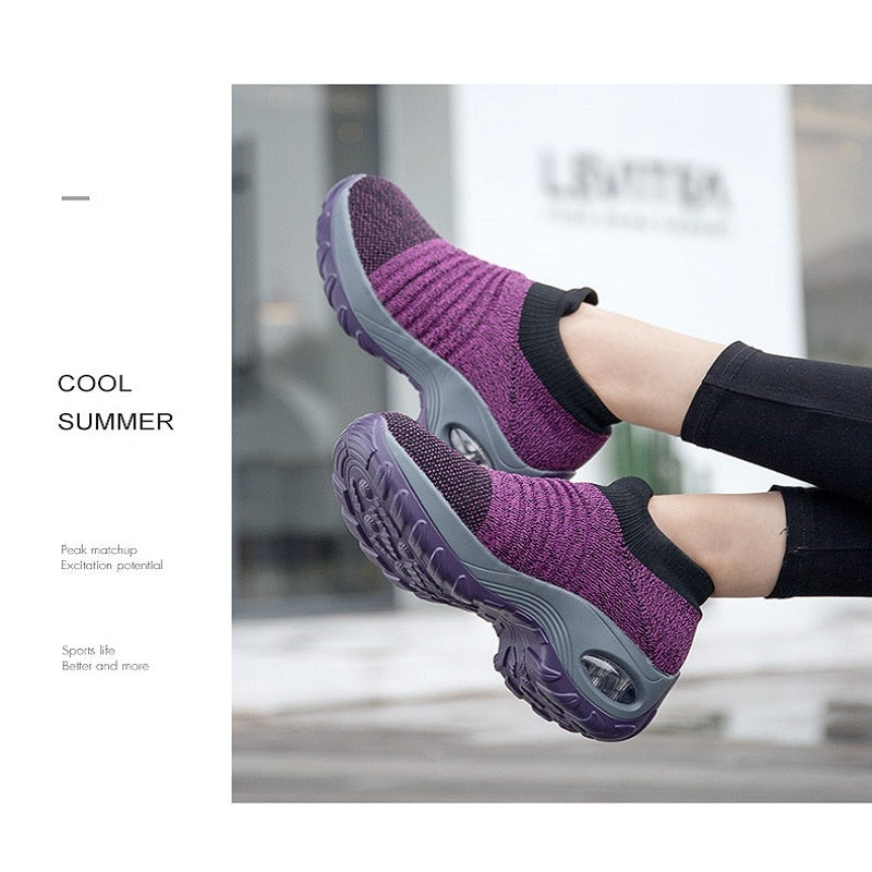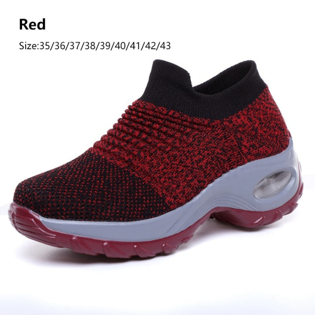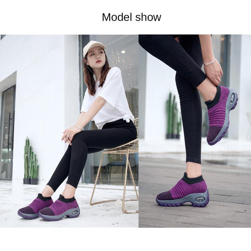 Women Walking Shoes Mesh Fashion Platform Slip-On Sneaker Air Cushion Gym Modern Dance