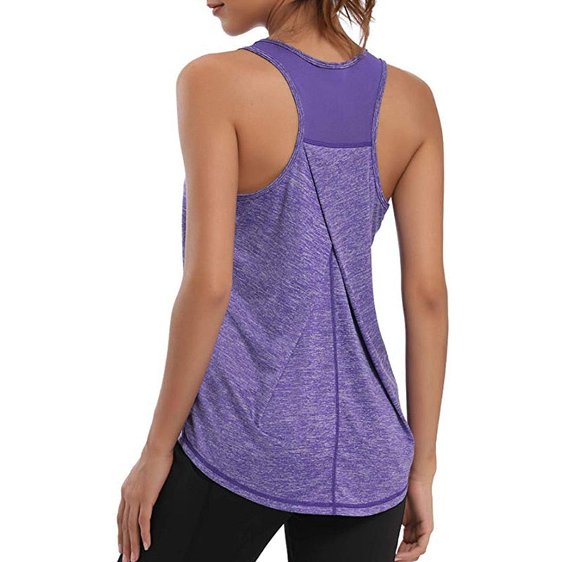Women Yoga Shirts T-Backless Loose Sleeveless Crop Tops Shirt Vest Quick-Dry