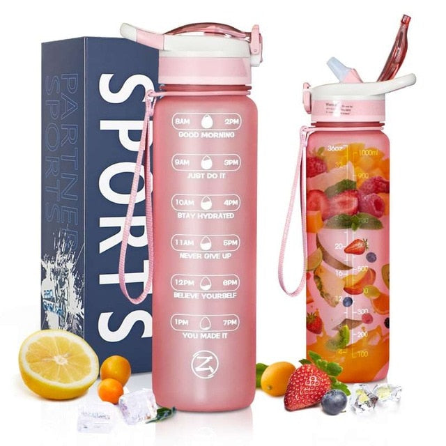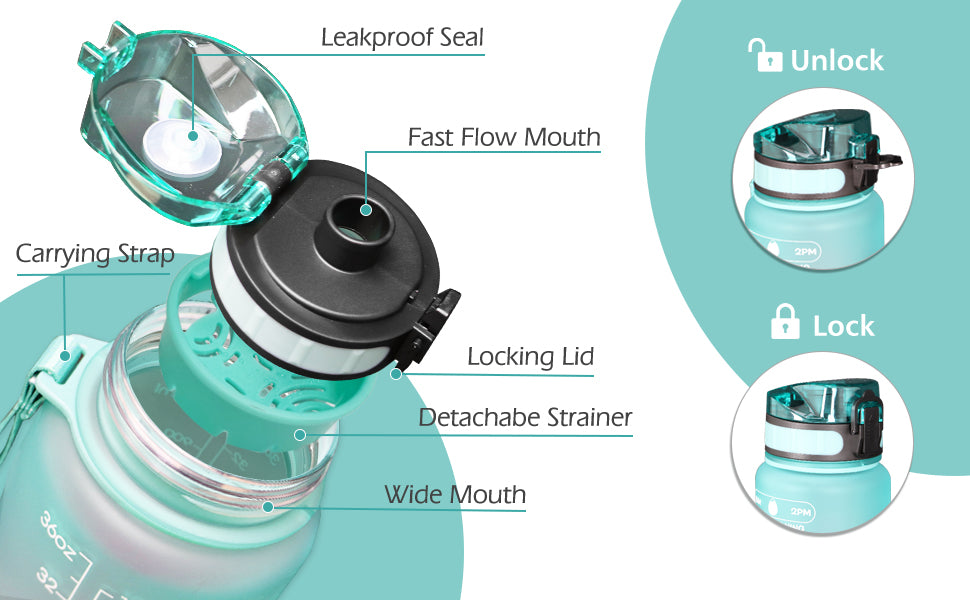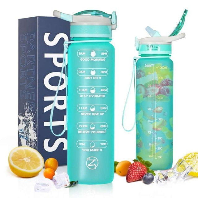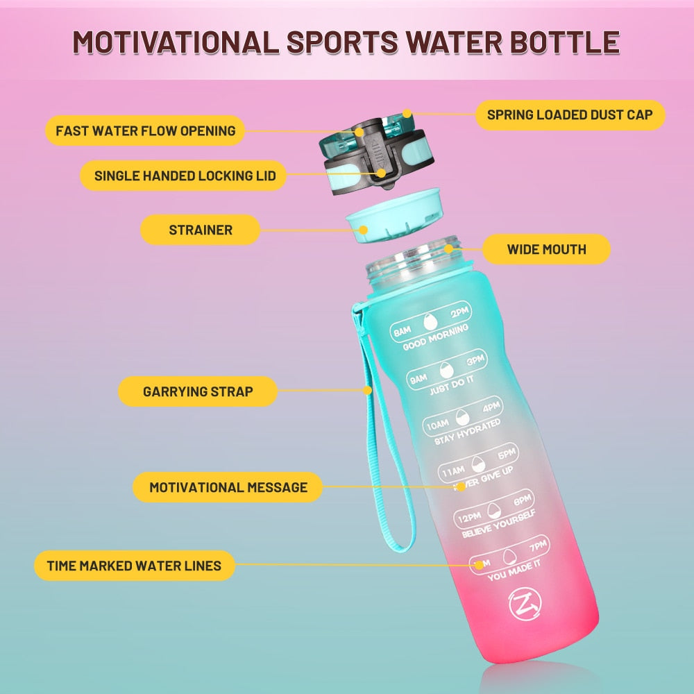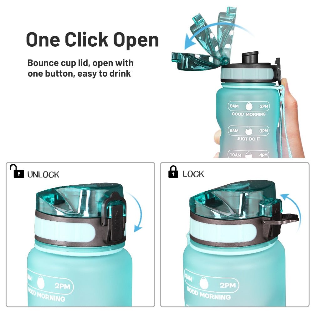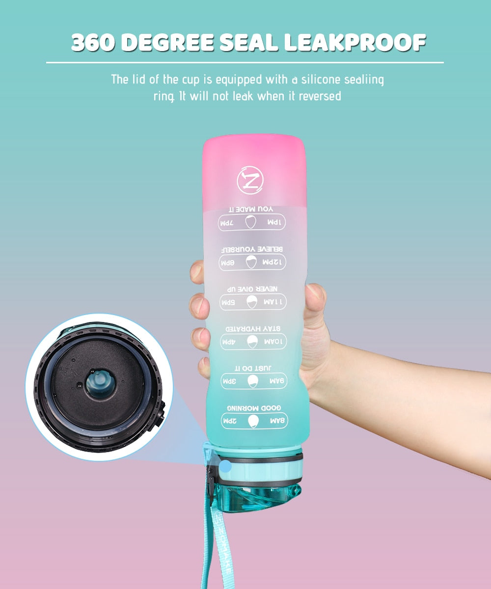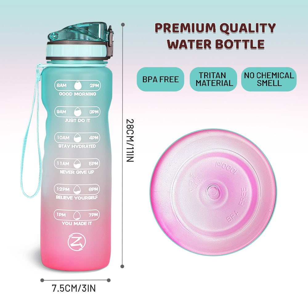 ZOMAKE 32oz Motivational Water Bottle with Time Marker & String, BPA Free Leakproof Water Jug for Fitness, Gym and Outdoor Sport